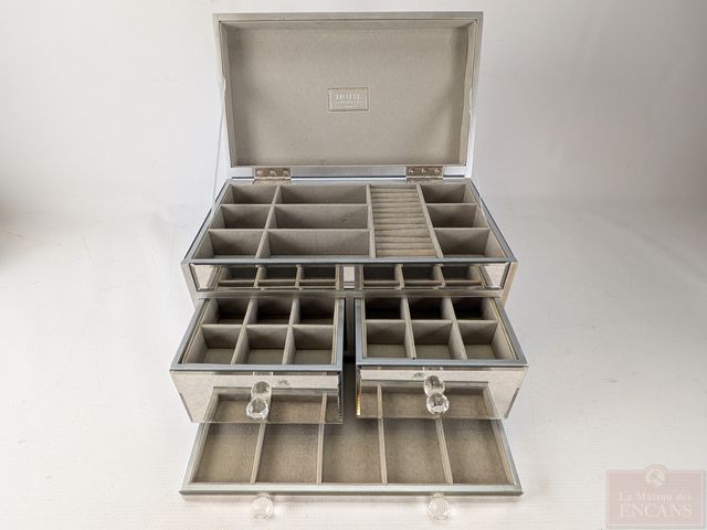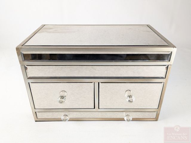 Coffre à bijoux à miroirs biseautés, mesurant 15.5 pouces de largeur