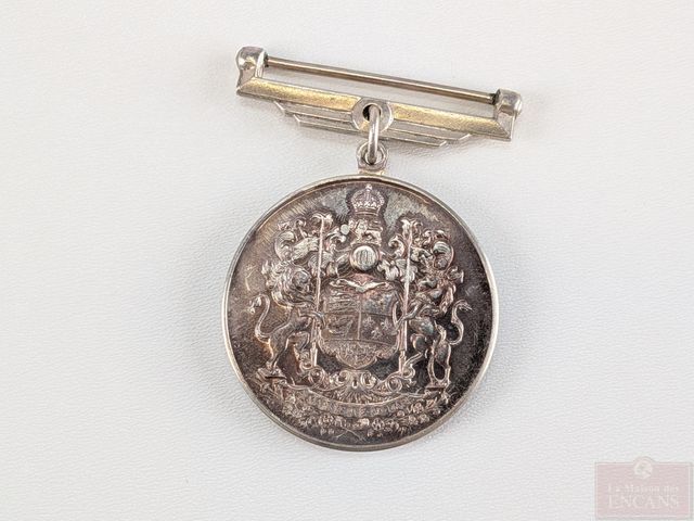 Lot # 187 - Médaille militaire du Service volontaire canadien en argent, montée sur une broche, datant de la deuxième guerre mondiale et mesurant 2 pouces de hauteur