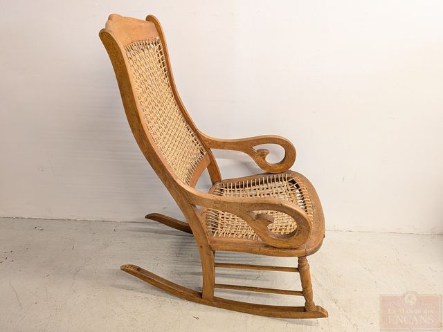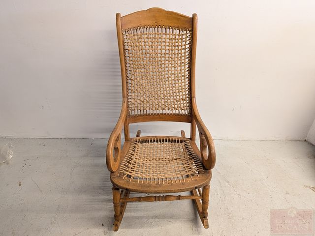 Lot # 135 - Ancienne chaise berçante canadienne sculptée sur bois, mesurant 43 pouces de hauteur