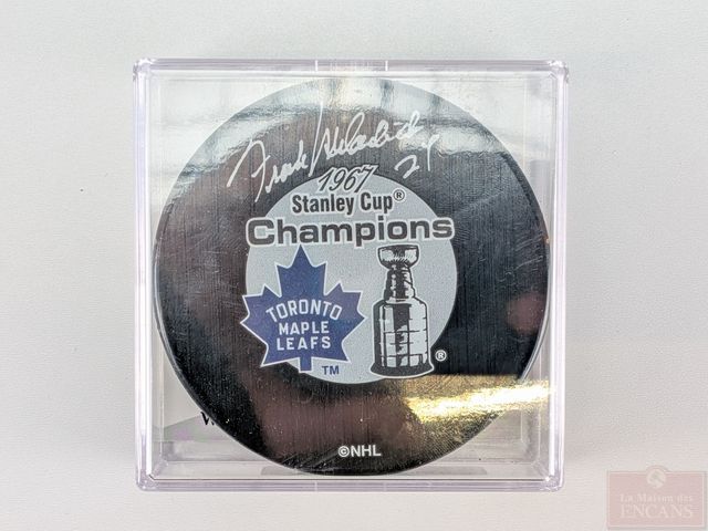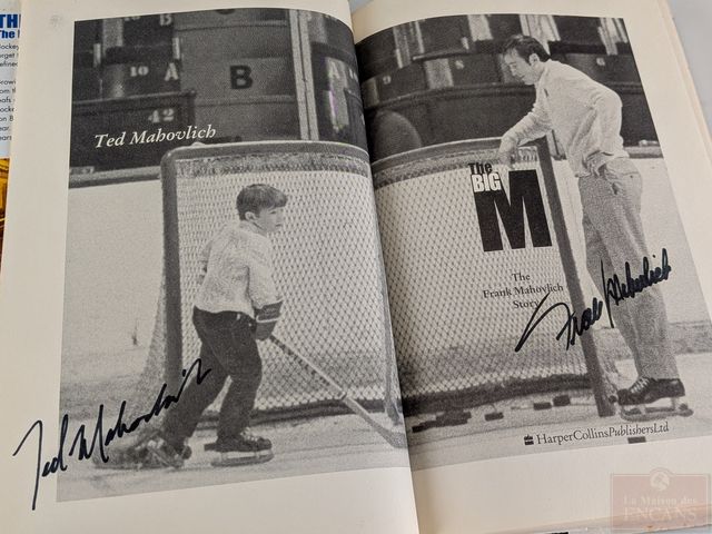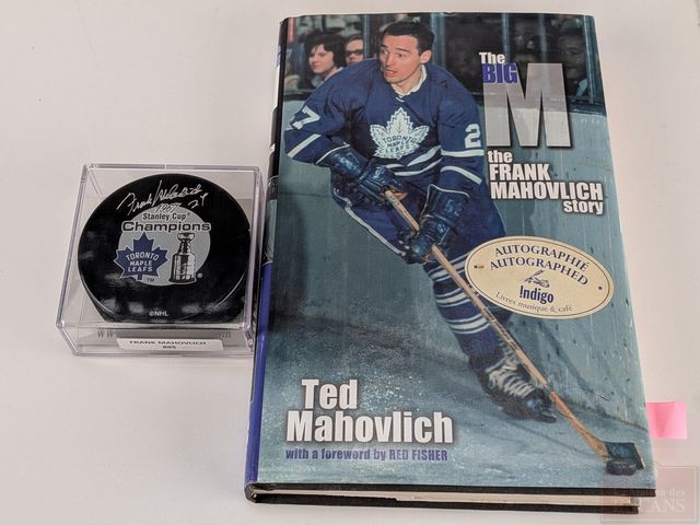 Rondelle de hockey et livre autographiés par Frank Mahovlich