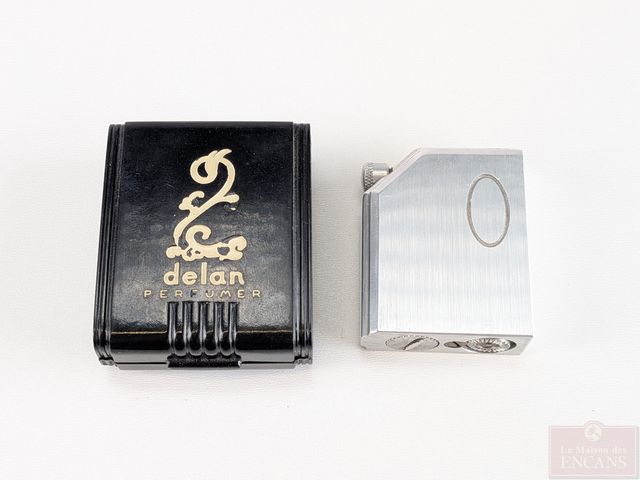 Lot # 190 - Parfumeuse art-déco Delan Perfumizer en aluminium dans son boitier en bakélite, faite au Canada, datant des années 1930 et mesurant 1.75 pouces de hauteur