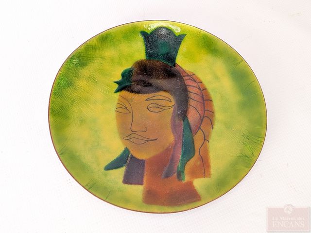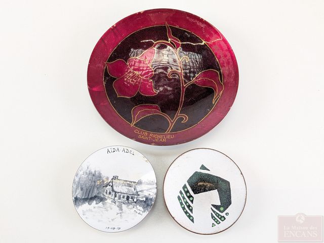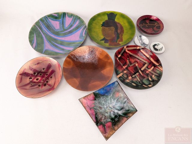 Lot d'émaux sur cuivre, dont certains signés, le plus grand mesurant 11.75 pouces de diamètre