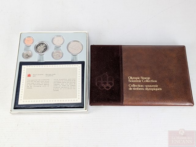 Lot # 226 - Collection souvenir de timbres olympiques de Montréal 1976, dans son coffret, ainsi qu'un ensemble numismatique de la monnaie royale canadienne 1984, dans sa boite d'origine avec son coffret