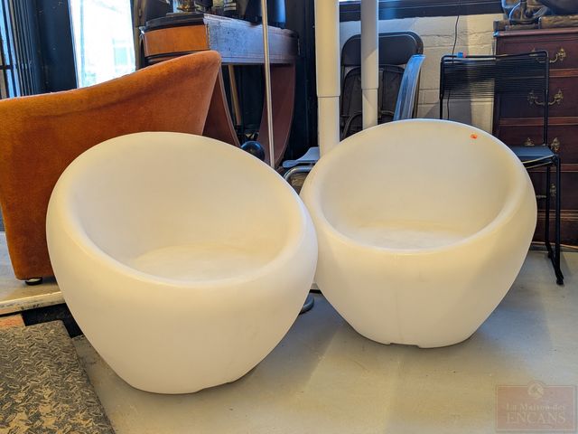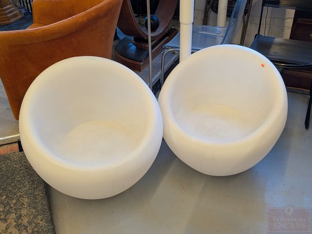 Lot # 147 - Paire de fauteuils design dans le style de Eero Aarnio, mesurant 25 pouces de hauteur