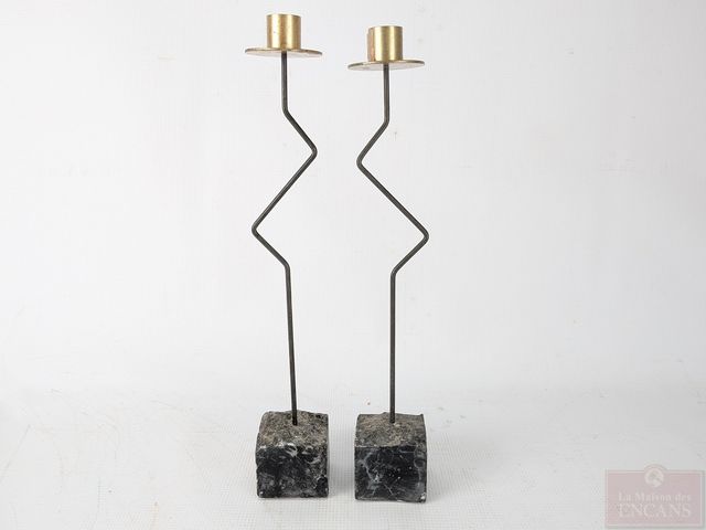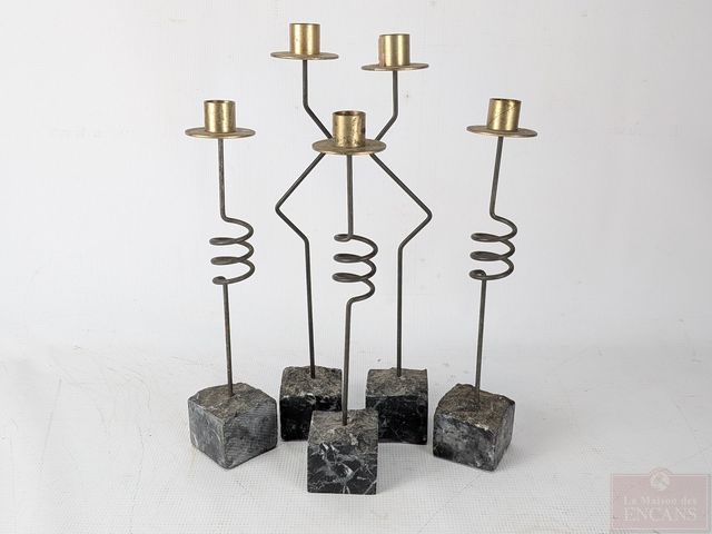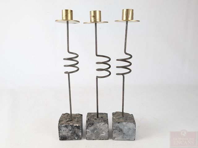 Lot # 174 - Lot de bougeoirs Ikea des années 1980, faits en acier et laiton sur base de pierre à savon, le plus grand mesurant 14.5 pouces de hauteur