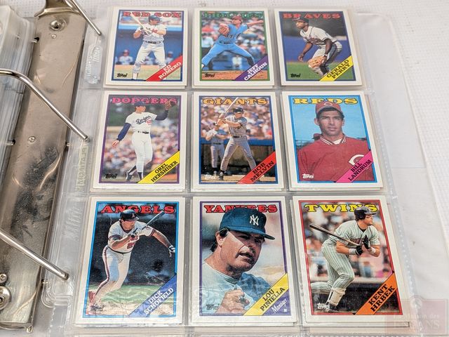 Album de cartes comprenant cartes de baseball Topps 1988 et cartes de hockey O-Pee-Chee des années 1980