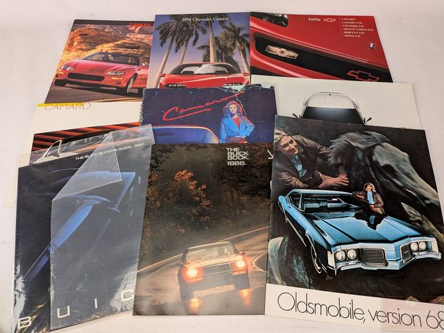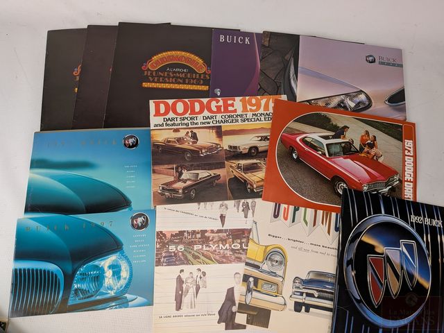 Lot # 180 - Gros lot de dépliants automobiles vintages, comprenant plusieurs Plymouth lithographiées datant des années 1930-1950, Chrysler, Dodge, Jeep, Jeep Grand Cherokee 2008, Ford, Pontiac Aztec 2001, Pontiac Grand Arme 2001, Chevrolet Cavalier 2001, Mercury Capri, Jeep 1980, Buick, Intrigue Oldsmobile et autres