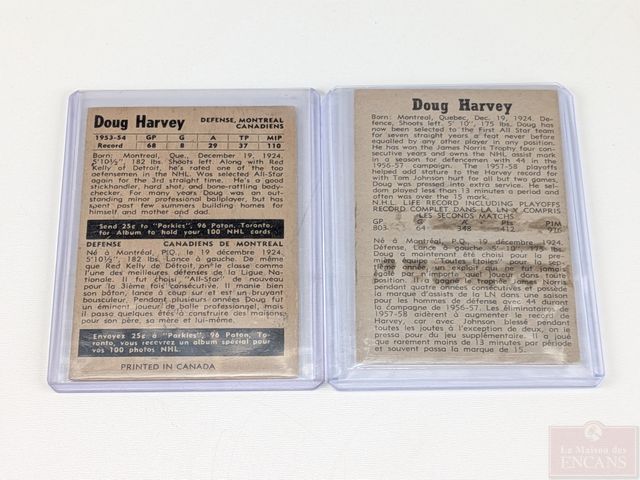Lot # 185 - Deux cartes de hockey vintages Doug Harvey 1954-55 et 1958-59