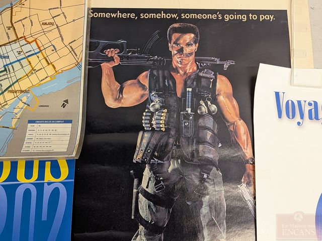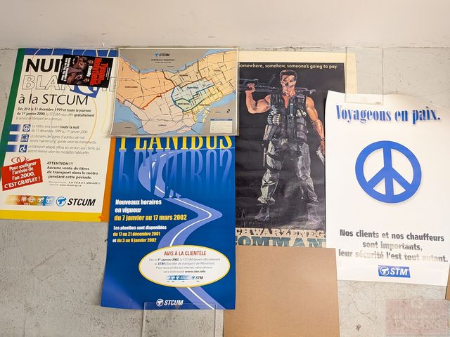 Lot d'affiches vintages, dont une de Mike Tyson mesurant 39 pouces de hauteur  ainsi que carte officielle du métro de la STCUM